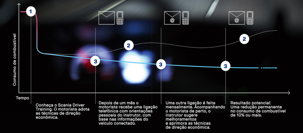 O Scania Driver Training reduz o consumo de combustível em torno de 10% quase que imediatamente.